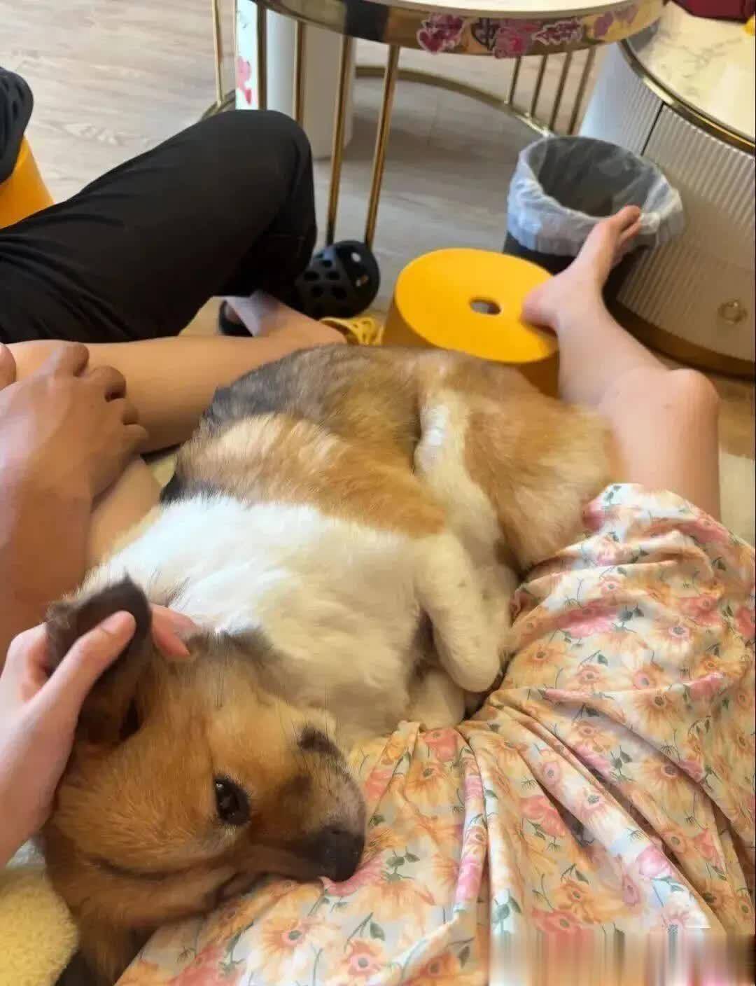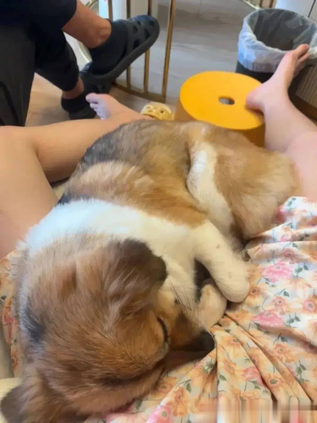 就像这只小串串,它用枕在网友身上的举动,向网友倾诉了它对主人的爱与信任。