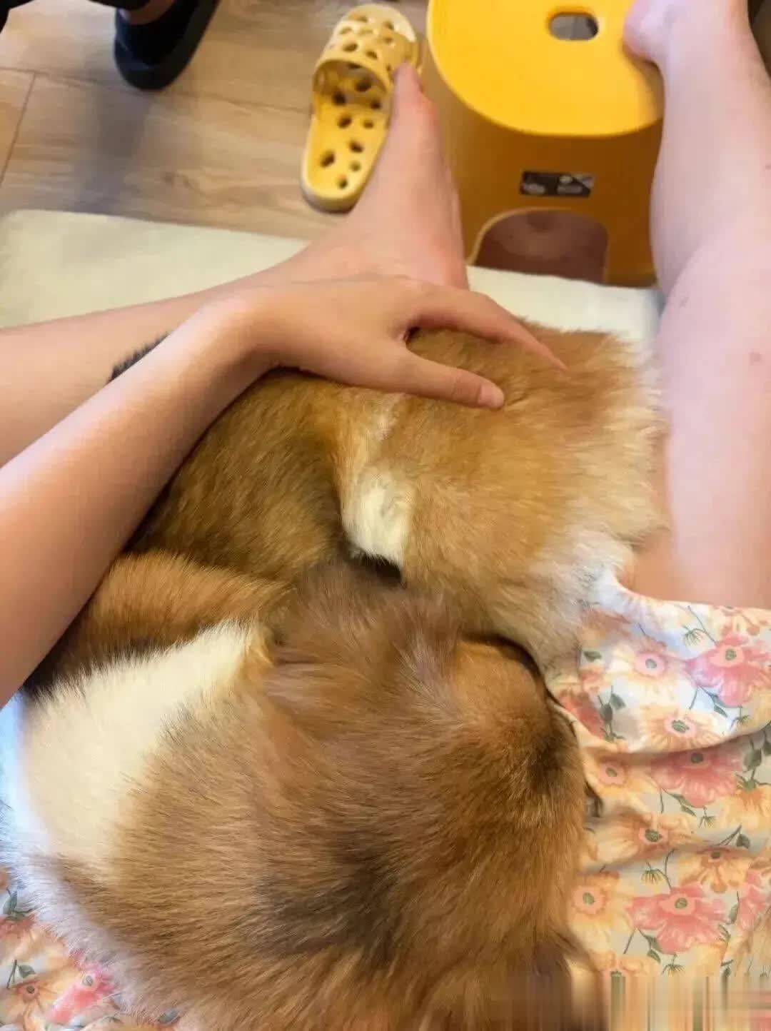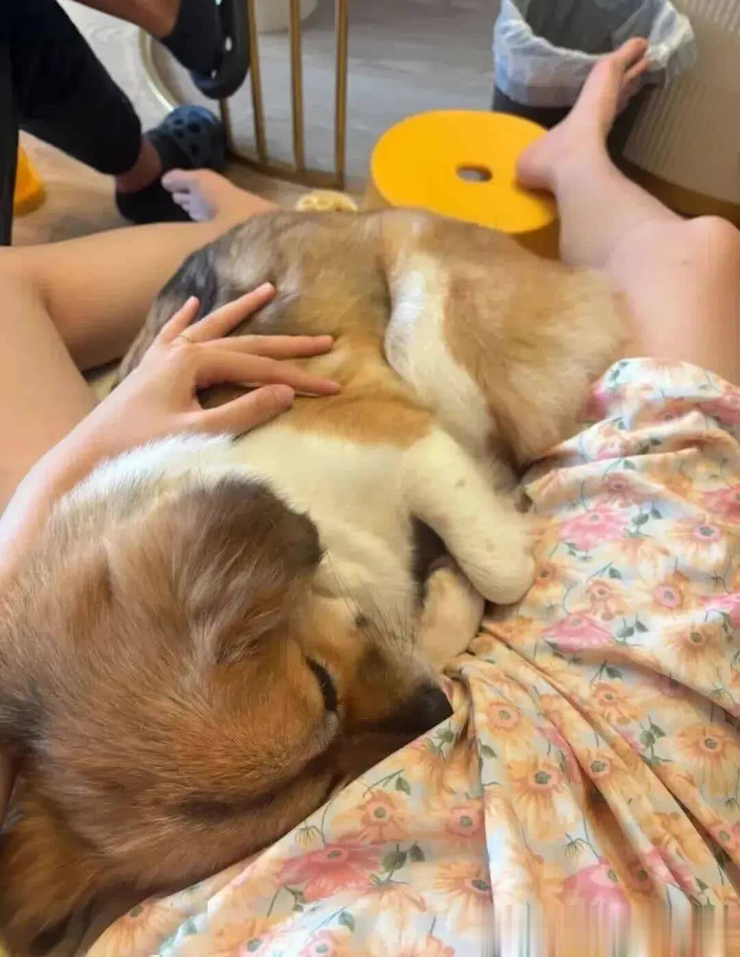 最后,它找准位置,把圆乎乎的小狗头稳稳地枕在网友身上,软软热热的小身体紧紧贴着网友,还时不时用小爪子轻轻抓一抓网友的衣服,仿佛在表达自己的依赖和喜爱。